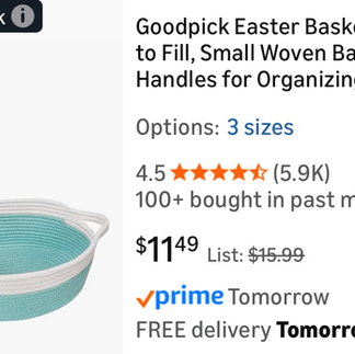Multi-use small basket, new: $3/pc